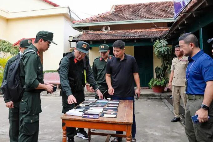 此次行动的成功得益于情报共享与联合突击。越南公安部通过大数据监测和受害者报案线索,锁定嫌疑人活动轨迹,并与柬埔寨贡布省警方协调,实施同步围捕。抓捕现场,执法人员缴获了大量作案工具,包括伪造的警官证件、诈骗脚本数据库和跨境转账记录,进一步证实了该团伙的组织严密性和跨国协作特征。崇氏梅及其骨干成员在突击中被当场擒获,其他嫌疑人则试图销毁证据,但均未果。